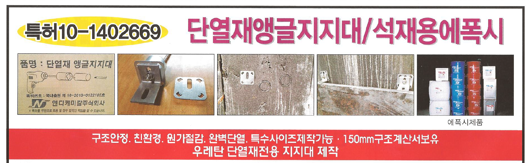 특허제품 '단열재 앵글 지지대' "한국석재신문"에 광고 게재